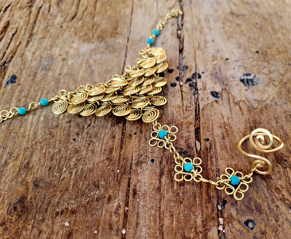 Unique handmade earmuff made of guinea and ocellated turkey feathers, handmade with brim